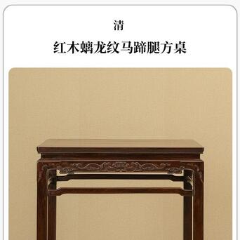 清 红木螭龙纹马蹄腿方桌