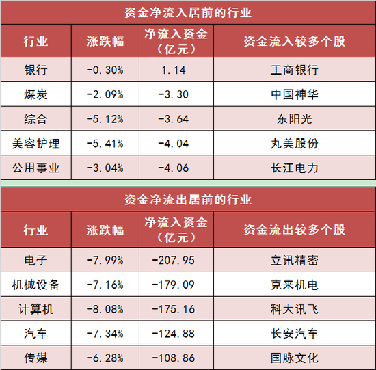 两市主力资金净流出近605亿元 银行板块实现净流入