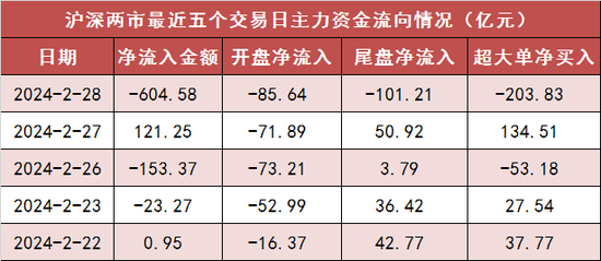 今日沪深两市主力资金开盘净流出85.64亿元,尾盘净流出101.21亿元,两市全天主力资金净流出604.58亿元。